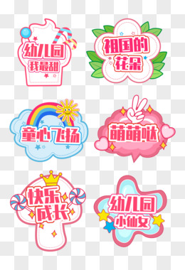一组矢量卡通扁片幼儿园手举牌装饰素材