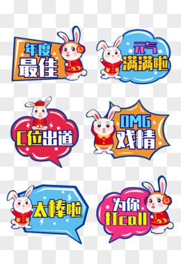 一组手绘兔子手举牌公司团建拍照手举牌套图合集素材