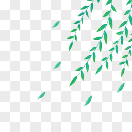 卡通手绘春天随风飘舞的绿色柳叶免抠元素