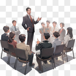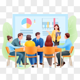 手绘卡通商务人士开会培训免抠素材