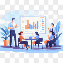 手绘卡通商务培训场景插画免抠元素