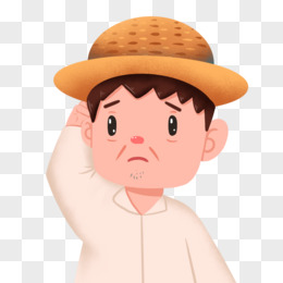 手绘卡通小女孩抓头挠头疑惑思考免抠素材