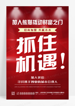 红色简约抓住机遇招商加盟共赢未来招商海报设计