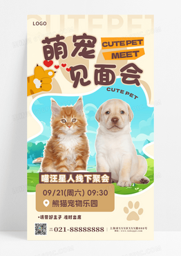 咖啡色简约宠物活动猫狗爪子绿色宣传海报设计