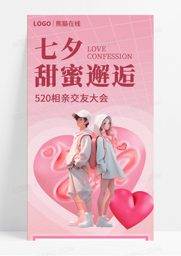 粉色3D浪漫甜蜜情人节七夕活动营销长图