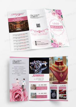 清新文艺风珠宝定制婚礼定制宣传单三折页