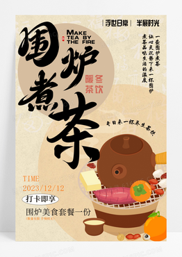 手绘插画小伙伴一起围炉煮茶聊天场景元素