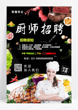 中西餐主厨招聘宣传海报