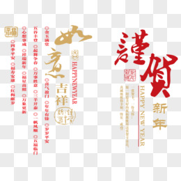 一组手绘书法风兔年竖排贺词成语祝福艺术字