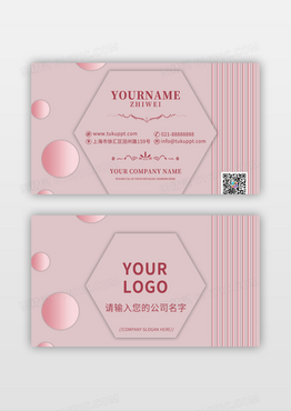 简约高档时尚粉色几何珠光名片
