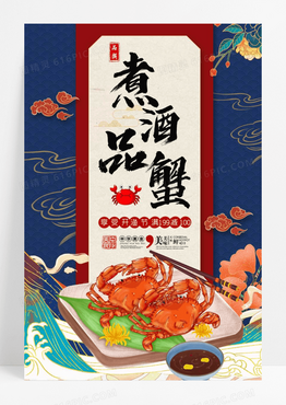 国潮大气简约中国风煮酒品蟹大闸蟹海报