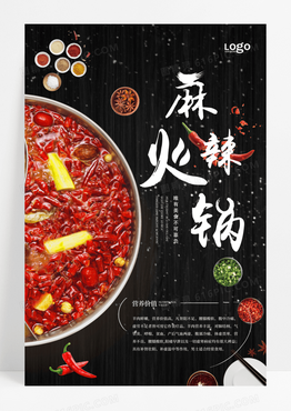 黑色木纹桌面羊肉火锅宣传餐饮海报