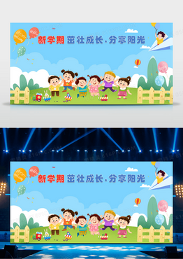 蓝色简约渐变新学期茁壮成长分享阳光签名墙展板幼儿园签名墙