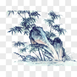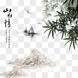 手绘国潮金线青山绿水凉亭大雁景观元素