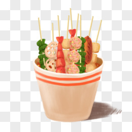 卡通手绘一碗串串关东煮免抠元素