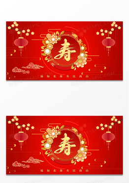 大红色中国风祝寿舞台背景展板设计
