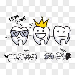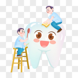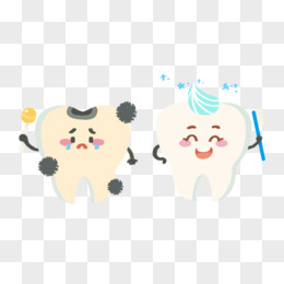 卡通手绘创意拟人一对黄白牙齿免抠元素