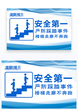 蓝色温馨提示安全第一上下楼梯注意安全温馨提示卡