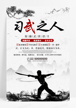 简约黑白竹子山水国风习武之人教育机构宣传海报