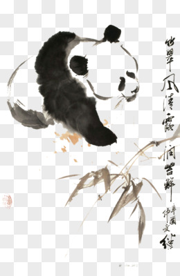 水墨风吃竹子的熊猫免抠元素