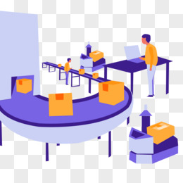 卡通扁平化智能工厂全自动生产流水线免抠素材