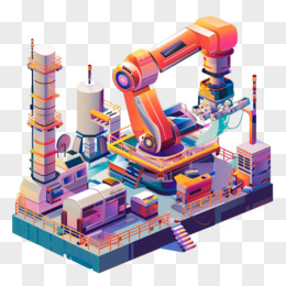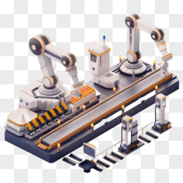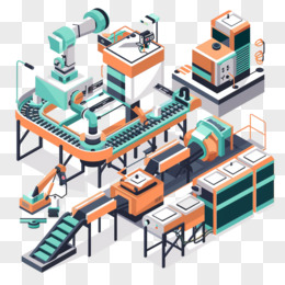 卡通矢量立体智能工厂全自动生产流水线免抠素材