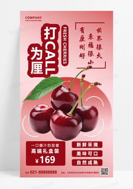 紫红简约水果促销车厘子海报平面海报设计