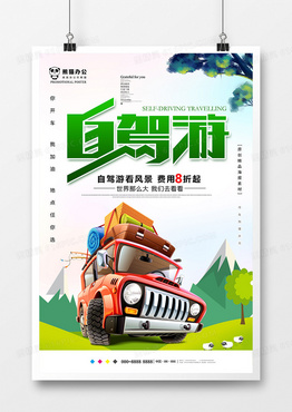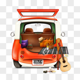 一组手绘插画风兔年不同月份兔兔场景元素之十月国庆自驾游元素