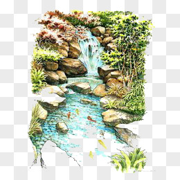 国风山水瀑布免抠元素