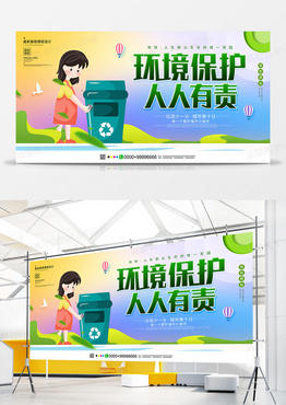 一组矢量黄绿色环保创意标语手举牌装饰系列三素材