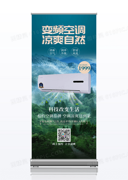 清新自然山夏季清凉空调电器促销海报展架易拉宝