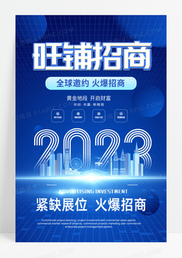 蓝色简约高端大气旺铺招商海报