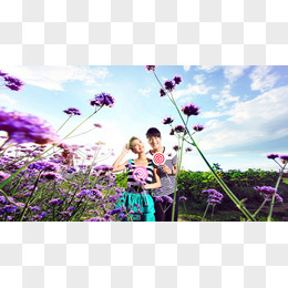 紫色的花蓝天白云情侣