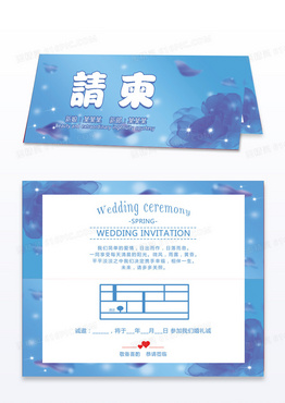 蓝紫色唯美浪漫花瓣婚礼邀请函结婚请柬