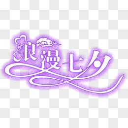 浪漫七夕亲密相约紫色花体字