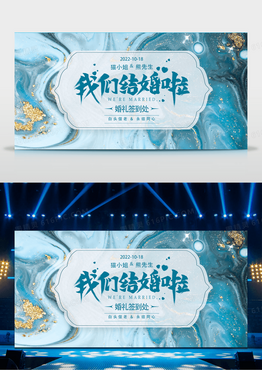 蓝色鎏金浪漫婚礼签到处结婚典礼婚庆展板