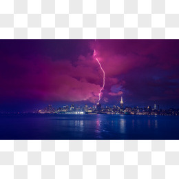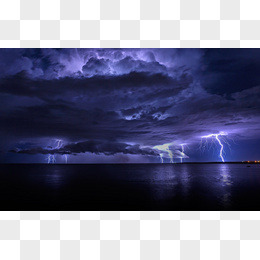 紫色云彩闪电海面