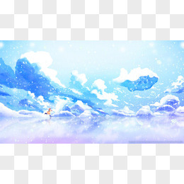 手绘卡通蓝紫色雪山