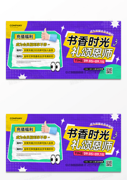 紫色涂鸦风书香时光礼颂恩师教师节促销展板