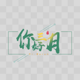 绿色你好三月字体设计