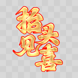 手写蛇年主题成语艺术字免抠抬头见喜金字红色描边