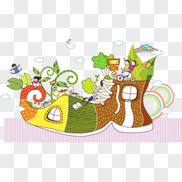 3D插画三个人骑着自行车经过城市建筑免抠元素