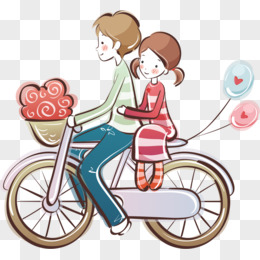 恋人骑单车载人卡通插画