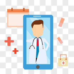 插画一个人坐在屏幕前向屏幕里的医生咨询免抠元素