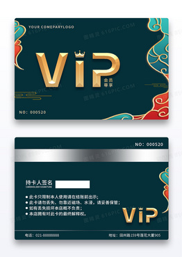 深绿色国潮中国风祥云烫金字VIP会员卡贵宾卡横版2张质感会员卡