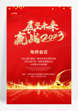 展望未来赢战2023红金大气年终会议邀请函海报