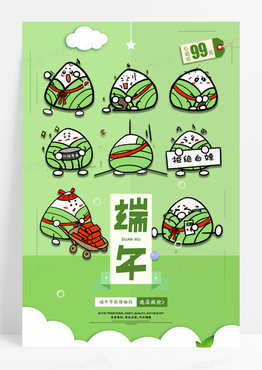 一组C4D绿色可爱卡通粽子捧爱心3d元素