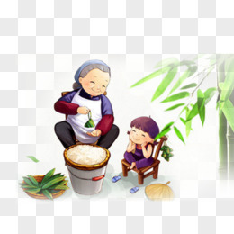 端午节包粽子奶奶小孩卡通