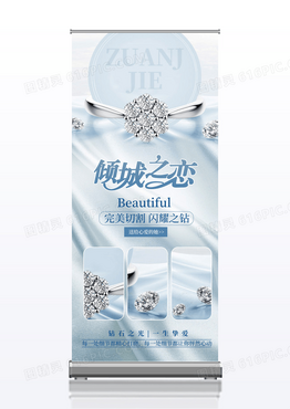 清新蓝色高级简约饰品钻戒婚戒钻石珠宝首饰展架易拉宝海报