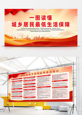 红色大气一图读懂城乡居民最低生活保障政策解读双面展板